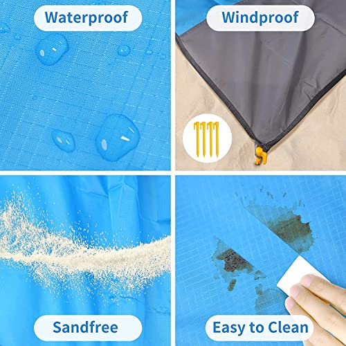 【Wide Application】Our portable picnic blanket is great for beaches, picnics, parks, family trips, sports events, open-air festivals, camping, hiking, fishing, and other outdoor activities. 【Compact and Portable】 Our warterproof and sand free beach mat is lightweight, it can be folded in a storage bag and it won’t take any space, convenient to take it on a backpack when traveling outdoors. 【Sand Free】Adopts 210T polyester for our beach blanket waterproof sand proof; the double-layer material features wear-resistant that can prevent from piercing. 【Safe to Use】 The sandproof beach blanket has 4 stakes that can be fixed with a dowel to prevent the beach blanket being blown away even in windy weather conditions.
