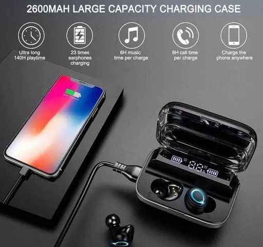 TWS Bluetooth 5.1 Earphones 3500mAh Charging Box Wireless Headphone Stereo Sports Waterproof Earbuds Headsets with Microphone. Individual power display of earbuds and charging case – L/R Bluetooth earbuds battery separated LED display design, it will display how much battery remaining in the charging base When putting into the case, you can know when is the best time to charge.