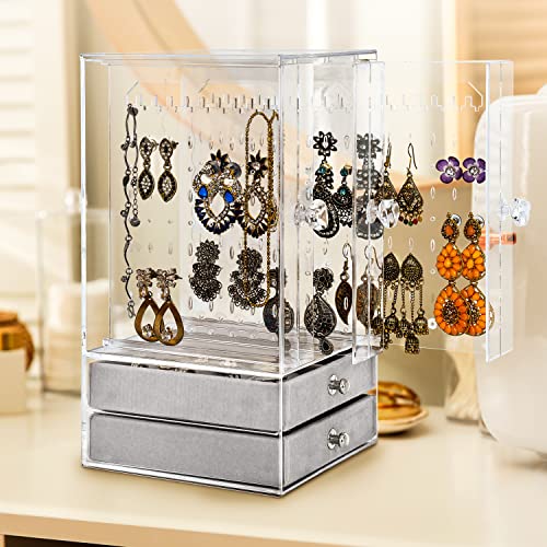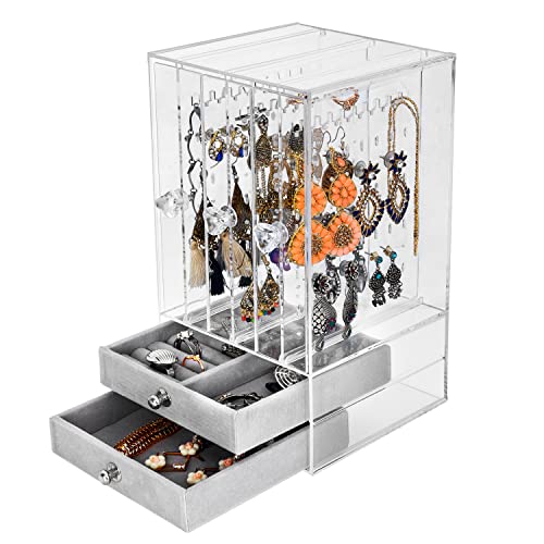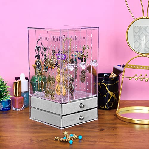 ABOUT SPACE Acrylic Earring Organizer Transparent Cosmetic Jewellery Box – 3 Layer Vertical Rack with Removable 2 Drawers for Rings,Necklaces,Jhumkas -Travel Jewelry Case for Women(L13x13WxH24.5 cm)