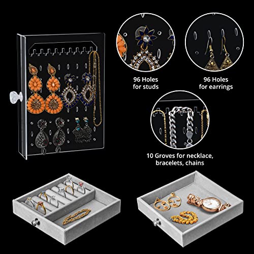 CONVENIENT HANDLE: The handle design helps remove panels and drawers in the jewelry organizer effortlessly to clean your earrings box. Size: 13 L x 13 B x 24.5 H cm (5 x 5 x 9.5 inch)