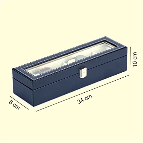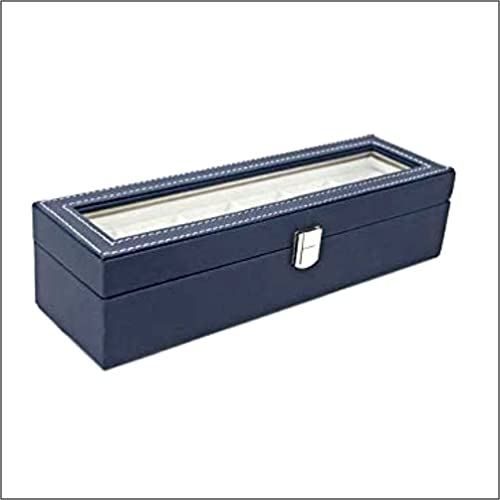 abrazo Watch Storage Box Display Case Organizer with Faux Leather Finish with 6 Slots Blue color