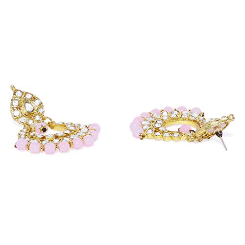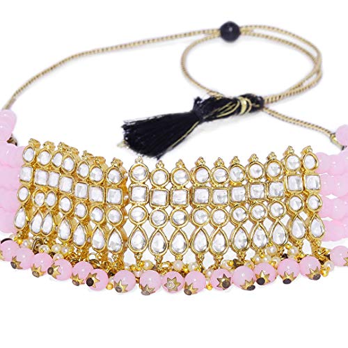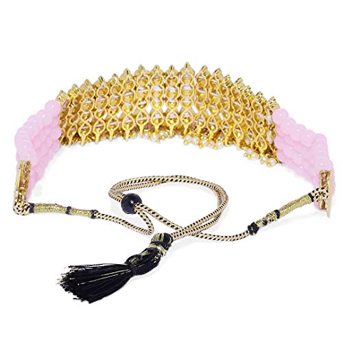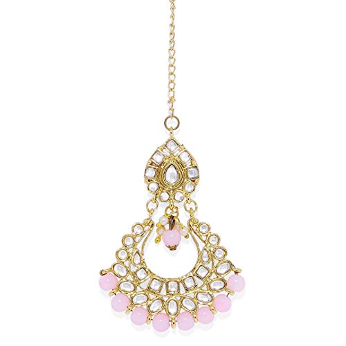 ACCESSHER bridal collection Gold toned Kundan and pink beads choker jewellery set with Earrings and maang tika for women and girls set of 1