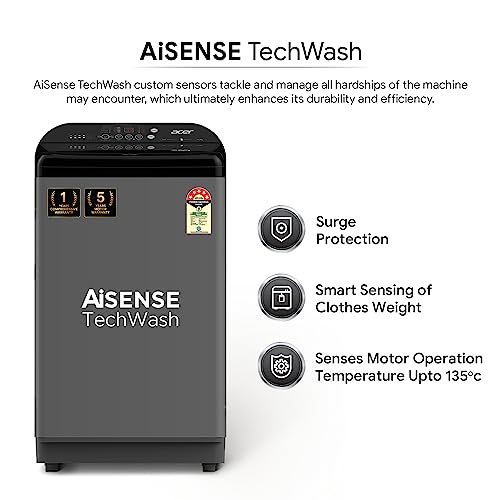 AiSense – AiSense custom sensors tackle and manage all hardships the machine may encounter, which ultimately enhances its durability and efficiency: Surge Protection, Smart Sense of Clothes Weight, Senses Motor Operating Temperature up to 135°C