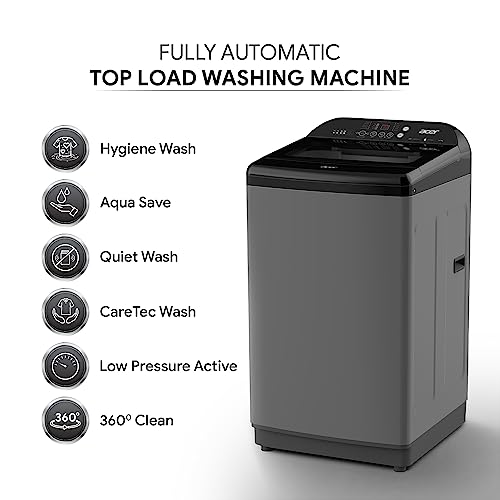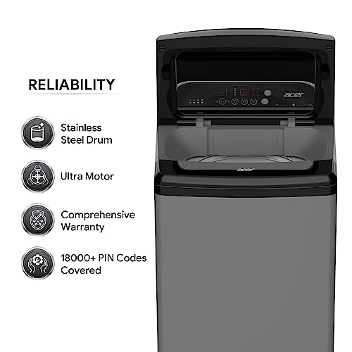 Acer 7.0 Kg Quad Wash Series Fully-Automatic Top Load Washing Machine (AiSense, HelixFlow Pulsator, Pro-Foam Tub, 5 Star Energy Rating, CareTec Wash, AR70FATLP1EC, 2023 Model, Grey)