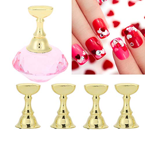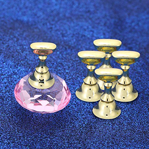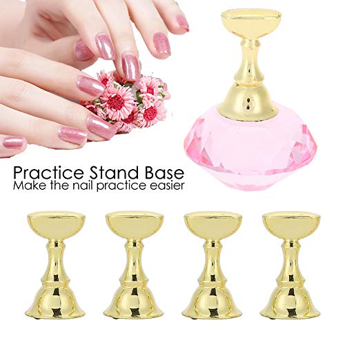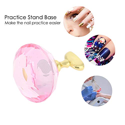 Acrylic Fingernail False Nail Tip Practice Stand, DIY Nail Art Display Stand, Crystal Base Exquisite Plastic + Alloy for Professional Salon Use and DIY at Home(Pink Base)