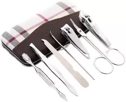 7-In-1 professional Manicure Set This high-quality imported Stainless Steel manicure set includes 7 professional manicure essentials. The affordable kit is safely housed in a delicate leather case, making this 7-in-1 manicure set. Perfect for home use or on-the-go. Precision and clever design the ergonomic handle with its perfectly shaped blade easily removes any dirt under and around the nail and the box can be opened when you press a button. Ideal for travel multi functional pocket pruning set is easy to use and carry, a box with 7 pcs, but everything for you to build elaborate, perfect for using at home or travel.