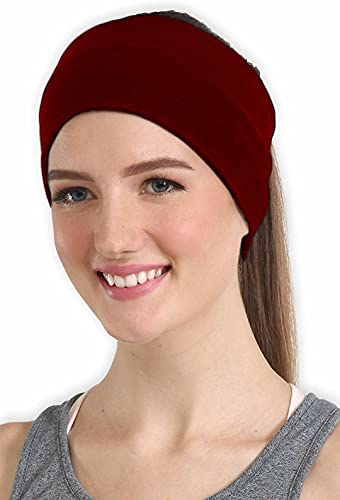Adhvik Combo of Premium Black and Maroon Color Wide Moisture Wicking and Non-Slip Men’s and Women’s Sport Athletic Running/Fitness/Yoga/Workout/Gym Sweat Head Band