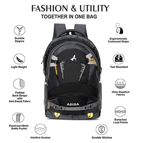 ADISA 15.6 inch Laptop Backpack Office Bag College Travel Back Pack 32 Ltrs (z-Black)