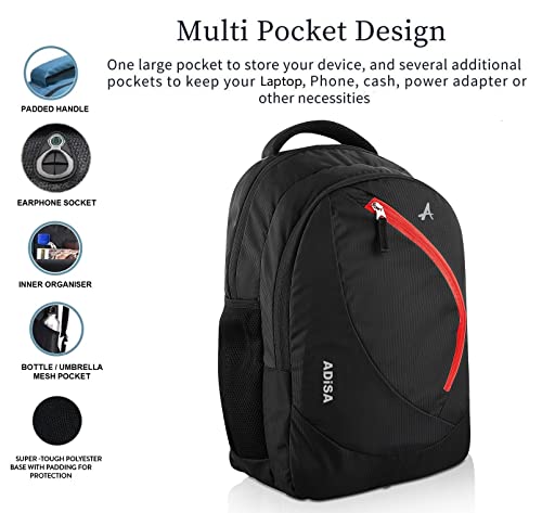 Light weight and spacious casual backpack with 2 compartments and 1 front easy-access pocket. The front and back of the backpack are fully padded for cushioning. It has organiser for pens, visiting cards, etc along with space for carrying papers, files, books, etc. It is spacious enough to keep all your stuff. It has provision for holding bottles/unmrella on both sides and has adjustable padded shoulder straps for your comfort. The logo of the bag is Reflective so it will glow when light hits it which is a very important safety feature, specially when on road.
