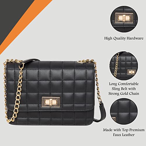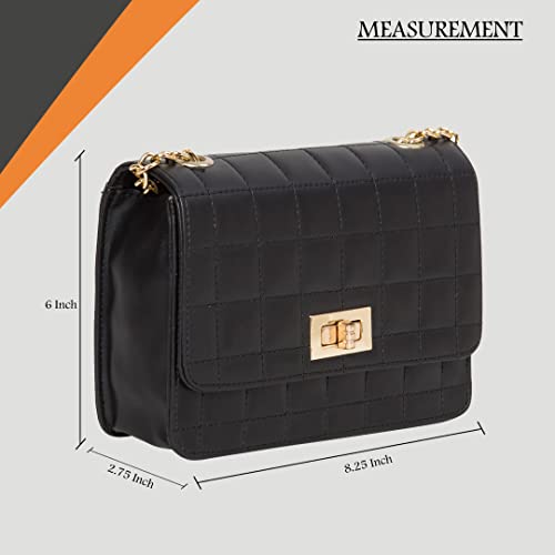 Quilted sling bag with quilted flap to be closed with a gold colored twist lock. Its belt is a combo of metal chain as well as PU. This is one of the most stylish and popular design of sling bags, suitable for both young girls and women. Stylish sling perfect for parties and clubbing, or for casual daily use.
