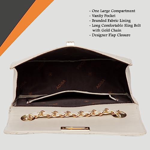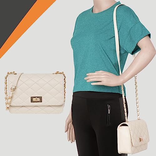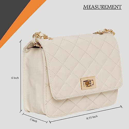 Quilted sling bag with quilted flap to be closed with a gold colored twist lock. Its belt is a combo of metal chain as well as PU. This is one of the most stylish and popular design of sling bags, suitable for both young girls and women. Stylish sling perfect for parties and clubbing, or for casual daily use.