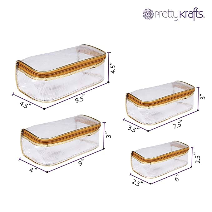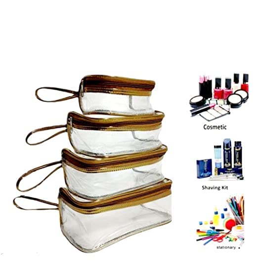 ADJD Set of 4 Multipurpose Transparent Travel Pouch Makeup Toiletry Kit Bag Cosmetic for Women Organizer Storage Vanity Cosmetics kit Jewellery Pouch Bag