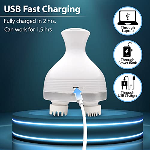 AGARO SM3785 Hair Scalp Rechargeable Electric Head Kneading Massager, 4 Speed Modes, Handheld Portable Head Scratcher Massager for Hair Growth, Full Body Pain Relief, Deep Clean & Stress Relax, White
