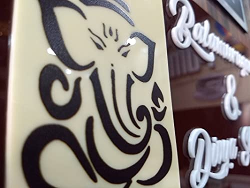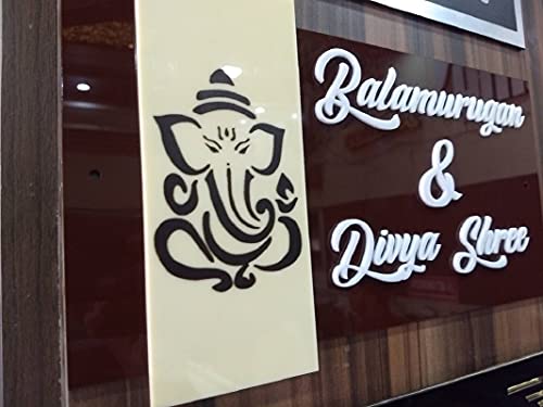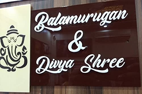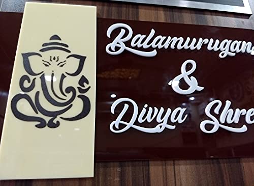 This is a acrylic name plate. Material used is Acrylic. Brown color acrylic is used in back & letters are of white color. The shine of the name plate will not become dull easily. Ganesh ji image is printed directly via UV techonology. The plate is 100 % suitable for use in rain exposed areas. Plate can be placed outside the house. Design is 100 % customizable.