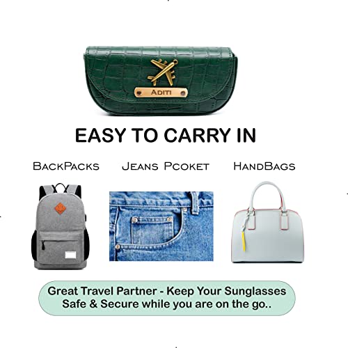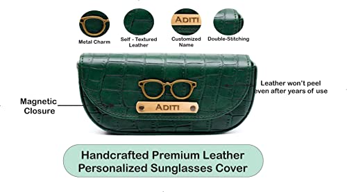 AICA Personalized Name & Charm Sunglasses Case for Men & Women (DarkGreen) | Self – Textured Leather Eyewear Cover with Magnetic Closure | Gifts for Men & Women