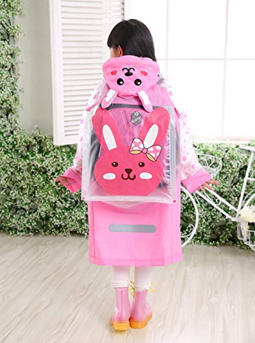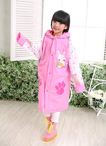 ★【Durable & Resuable】:The rain coat is durable, resuable and extremely resistant to abrasion and tearing. It is comfortable to wear and has a big enough space to cover a full size school bag. Long sleeves and hood inflatable design keep you dry from head to foot even in the stormy heavy rain. Boys and girls love the bright, colourful and animal characters on this rain coat.
