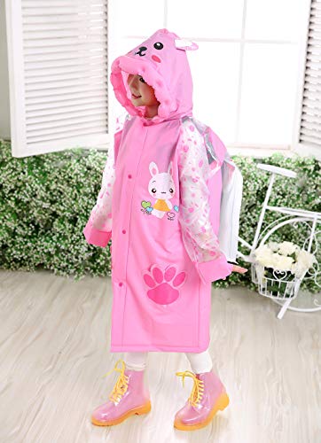 Aircee Kids Rain Coat for Kids Raincoat Girls Boys Reusable Rain Poncho Jacket Gear Schoolbag Position Packable Rainwear