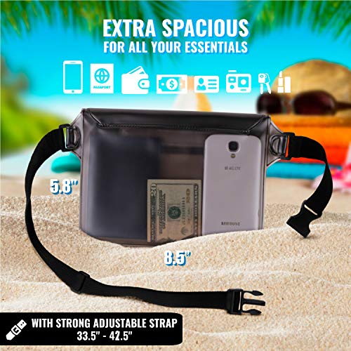 AiRunTech Waterproof Pouch with Waist Strap (2 Pack) | Beach Accessories Best Way to Keep Your Phone and Valuables Safe and Dry | Perfect for Boating Swimming Snorkeling Kayaking Beach(Black+Grey)
