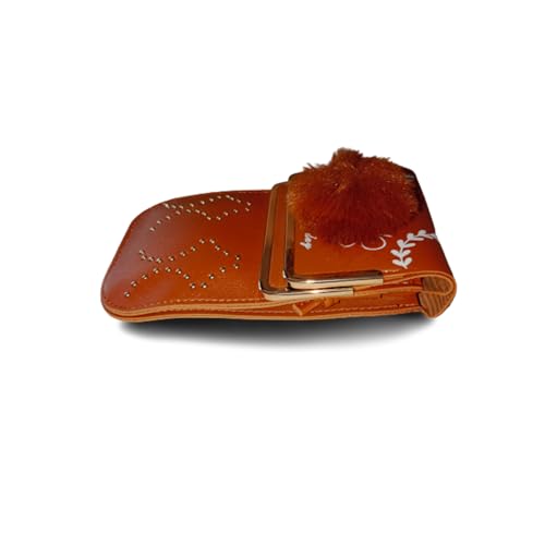 Akdigisoft Happy Handbag Womenmobile phone case in cognac leather with studs