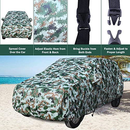 AllExtreme MBG5007 100% Tested Waterproof Car Body Cover Compatible with Maruti Suzuki Brezza Triple Stitched UV Heat Resistant Indoor Outdoor Body Protection (Army Print with Mirror)
