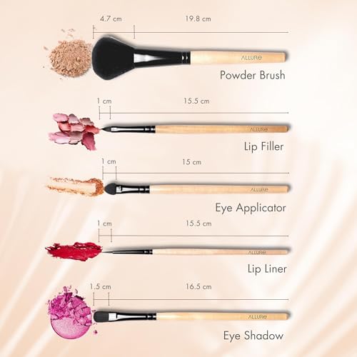 Allure Classic ACK-09 Pack of 9 Makeup Brush Set is an enchanting composition of 9 luxurious, handcrafted brushes made of wooden handles and aluminum ferrules. Dressed with the finest hair, these brushes are ideal for all sought of makeup requirements. It comes with a Multi Utility travel pouch for safe and easy storage and carrying of your makeup tools. 1.) Powder Brush 2.) Foundation Brush 3.) Eye shadow Brush 4.) Eye Applicator 5.) Eye Liner Brush 6.) Eye Groomer 7.) Lip Filler Brush 8.) Lip Liner Brush 9.) Mascara Brush Features : Essential tool for creating a professional crease definition and a perfect Makeup Look Dressed with the finest hair The brushes are ideal for a daily makeup routine as well looks with extravagance It’s the perfect gift for any aspiring MUA or jet-setting beauty maven To avoid confusion, each one has its name (defining its purpose) helpfully written on the handle About the Brand: Loved by professional artists and makeup geeks globally, Allure’s expert range of professional makeup tools give you that perfect makeup look you desire. Versatile design, Patented technology and meticulously worked of details to create a collection of artist tools, combining natural and man-made bristles brushes as per best usage. The brand’s high-performing makeup brushes not only look beautiful and of premium quality, but also are considered among the best in the business, enabling you to blend, buff and highlight like a pro!
