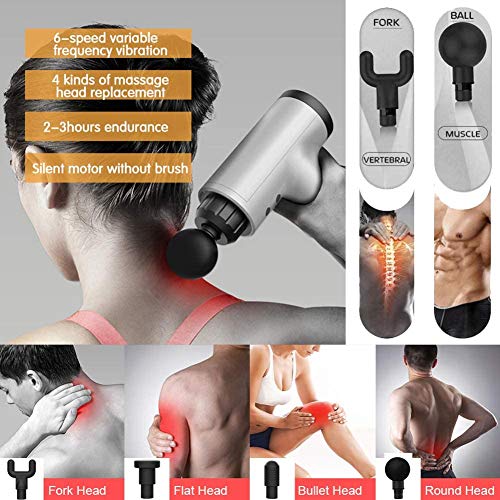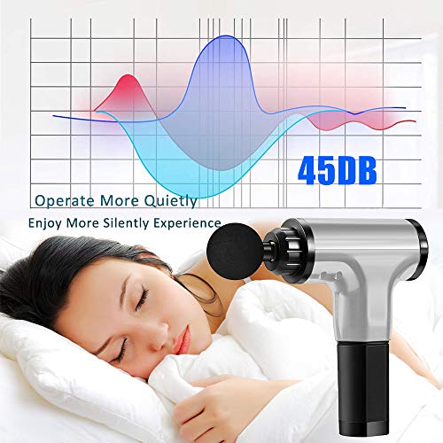 「💪ULTRA QUIET AND SAFE」4-pejiijar hand-held deep tissue massager device adopt unique electric glide technology and upgraded AI technology, its noise is controlled within 45dB even at the highest speed. You can use it at home, gym and office without worrying about disturbing people around you