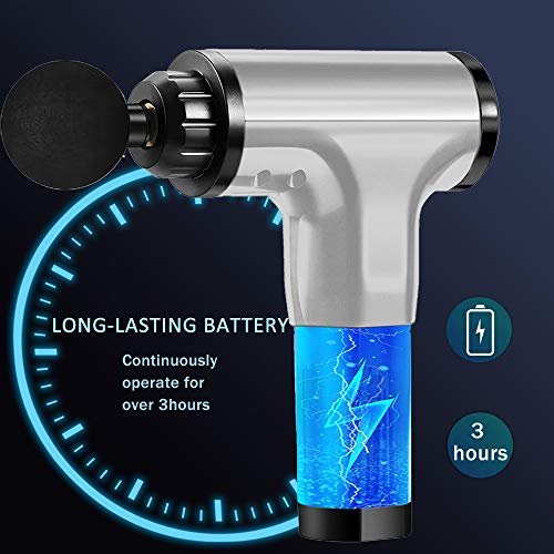 「💪HIGH PERFORMANCE BATTERIES」Percussion massage gun In-built rechargeable 2000 mA lithium-ion battery gives 2-3 hours continuously use after full charge, providing a full week of use. Wireless massage gun can let you to take the comfort of relaxation on-the-go