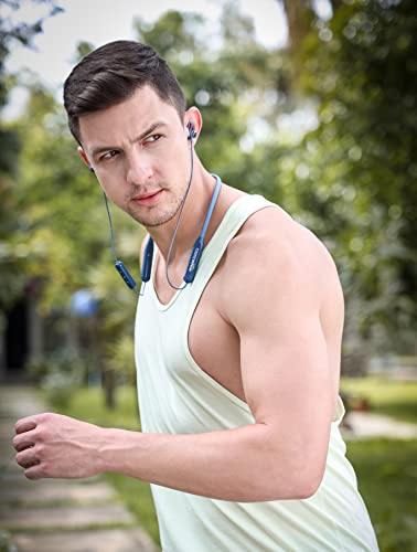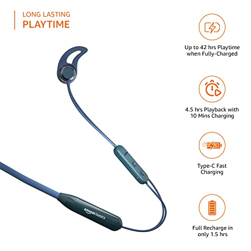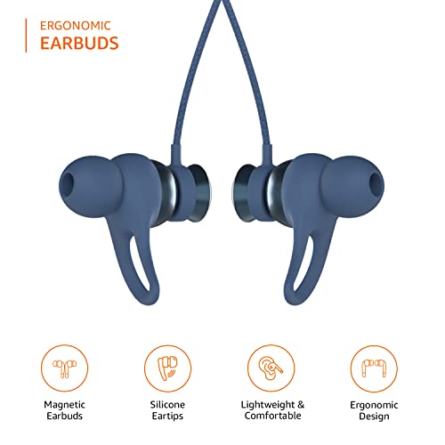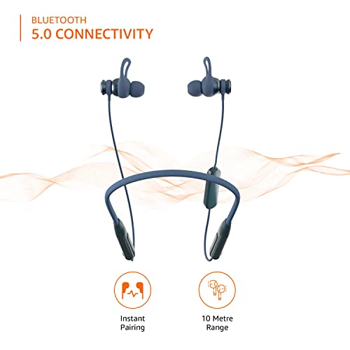 Amazon Basics Bluetooth 5.0 Neckband, IPX-6 Rated, Up to 42 Hours Playtime, Magnetic in Ear Earbuds, Voice Assistant, Dual Pairing, Blue