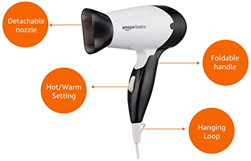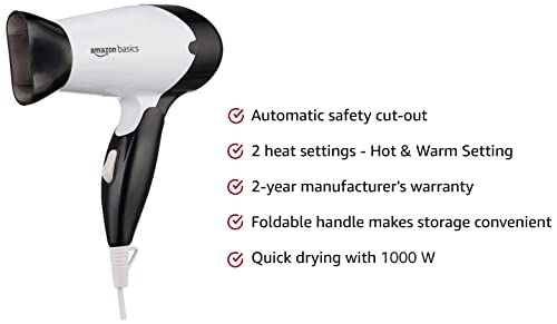 Amazon Basics Hair Dryer 1000 Watts with 2 Heat/Speed Settings – Compact & Foldable