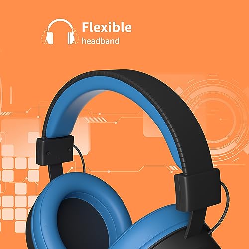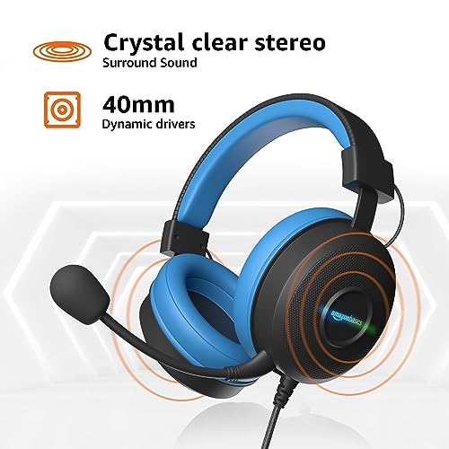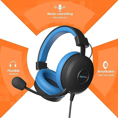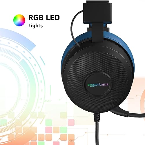 Amazon Basics Wired Over Ear Gaming Headphones mic for PC, Laptop | Static RGB | (Black – Blue)