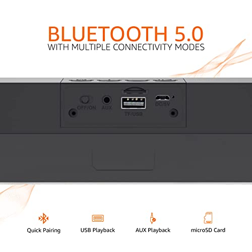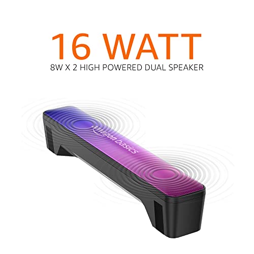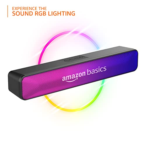 Amazon Basics Wireless Sound Bar with Bluetooth, USB, FM Antenna, and Party RGB Lights for TV, Mobile, PC, Tablets, and Laptops, 16W