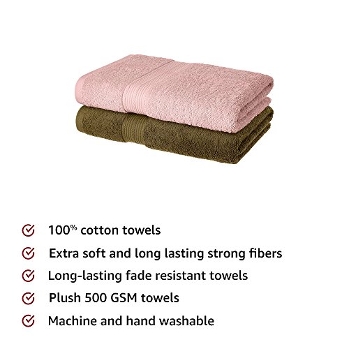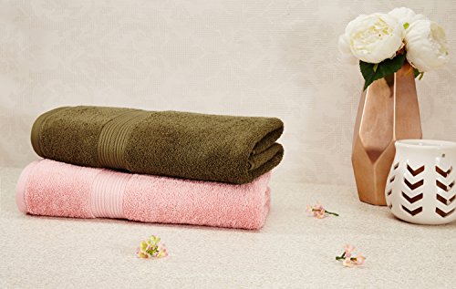 Amazon Brand – Solimo 100% Cotton 2 Piece Bath Towel Set, 500 GSM (Sepia Brown and Baby Pink)