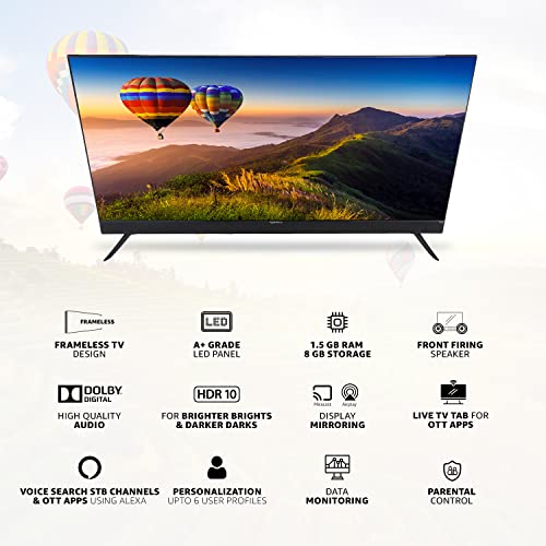 Smart TV Features : Fire TV Built-In | Supported Apps: Prime Video | Netflix | Disney+ Hotstar | YouTube | 12000+ apps from Fire OS Store | Voice Remote with Alexa | DTH Set-Top Box Integration to switch between DTH TV Channels and OTT apps from home screen | Display Mirroring for compataible devices | Quad core ARM Cortex-A35 CPU @ 2.0GHz | 1.5GB RAM + 8GB Internal Storage