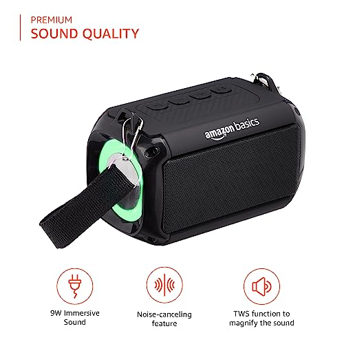 AmazonBasics Bluetooth 9W Speaker, with TWS Function, Powerful Bass, BT 5.1, MicroSD Card Slot, AUX Input, RGB Lights, USB Support, and in-Built Noise Cancelling Mic (Black)