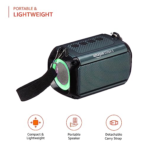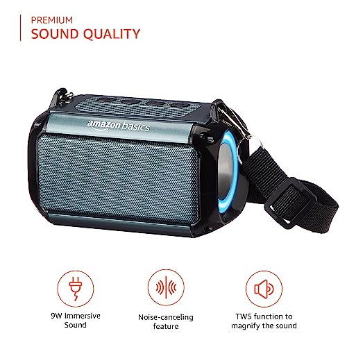 AmazonBasics Bluetooth 9W Speaker, with TWS Function, Powerful Bass, BT 5.1, MicroSD Card Slot, RGB Lights, AUX Input, USB Support, and in-Built Noise Cancelling Mic (Grey)