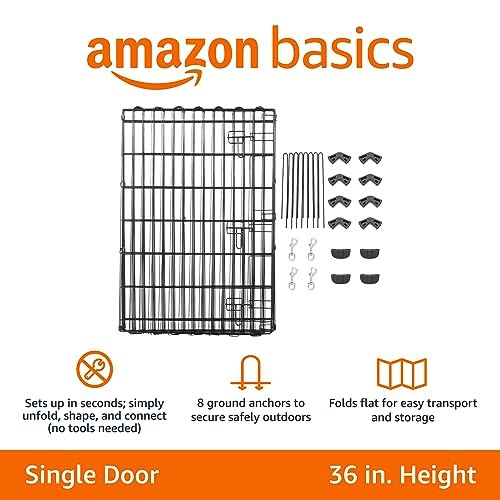 AmazonBasics Foldable Metal Pet Exercise and Playpen With Door, 36″, Large Size