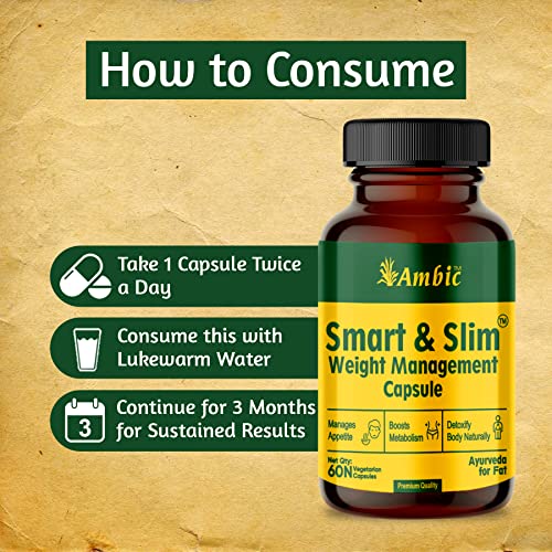AMBIC SMART & SLIM Weight Loss Capsule I Ayurvedic Medicine for Healthy Weight Management | Garcinia Cambogia, Medohar Guggulu for Belly Fat, Hips & Thighs – 120 Veg Capsules