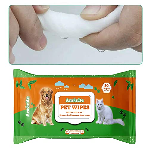 AMORITE® Wet Pet Wipes for Dogs, Puppies & Pets – Apple Scent – 100% Viscose Fabric -Biodegradable Pack of 1, 80 Wipes