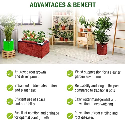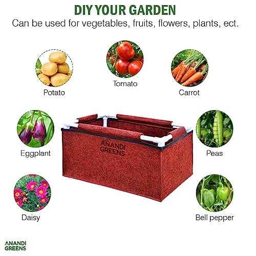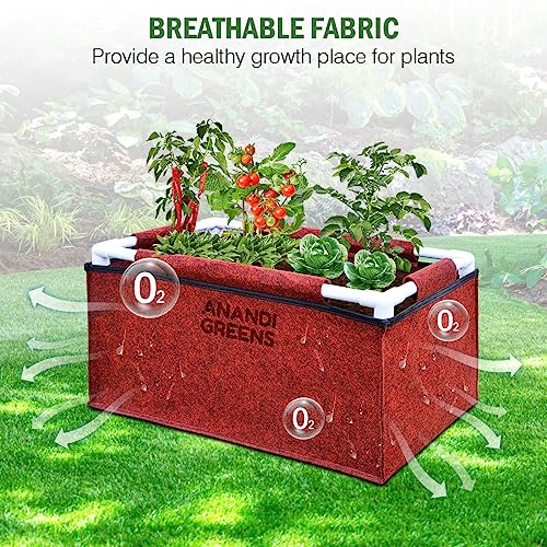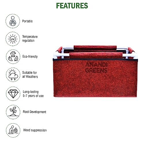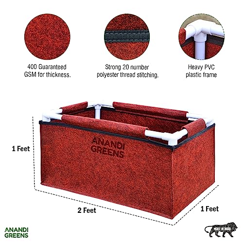 Anandi Green’s 400 GSM Geo Fabric Rectangular Plant Grow Bag with PVC Pipe Support Suitable for Vegetable Outdoor Terrace Gardening Bag Size (Maroon 2Lx1Wx1H Fit)