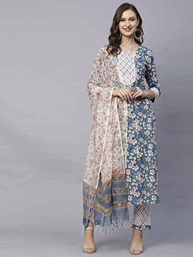 This set includes: 1 Kurta with 1 Pant & 1 Dupatta || Work : Printed || Neck Style:- Round Neck