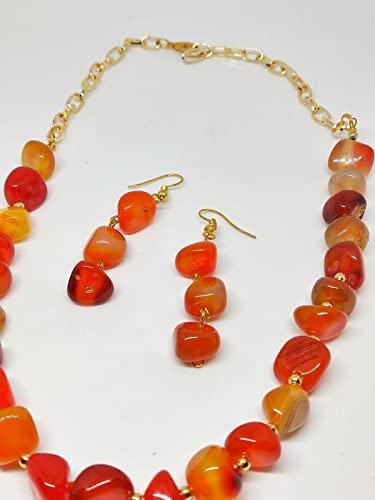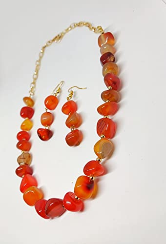 Classic Vibrant necklace set made of Orange Agate nuggets Length – 20inch Gem Stone – Agate nuggets beads Color- Orange For any customised color please feel free to contact me.
