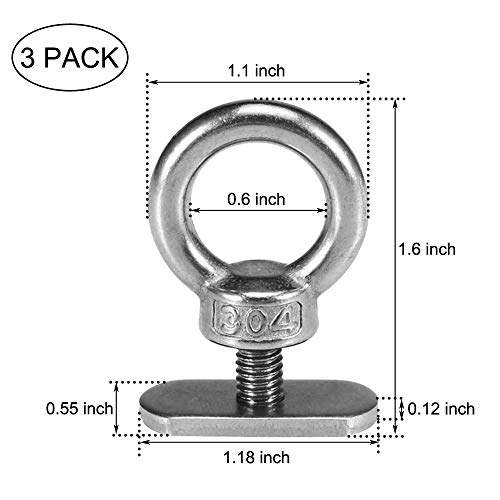 AONTOKY 3Pack Stainless Steel Kayak Track Mount Tie Down Eyelet Rail Accessories for Kayak Canoe Boat and Bungee Cord Rope