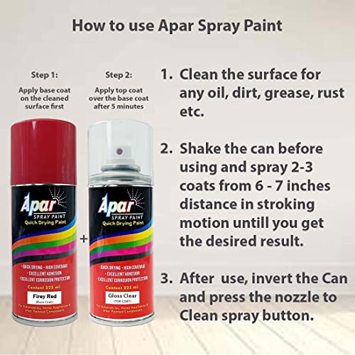 APAR Automotive Spray Paint fiery Red (RC Colour Name) + GC Compatible for Hyundai Cars -225 ml (Pack of 2-Pcs)