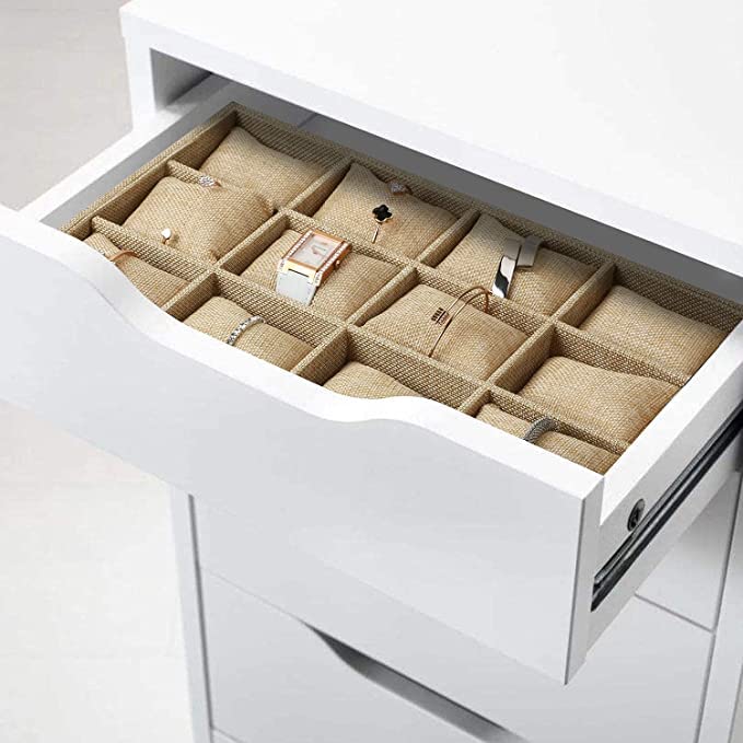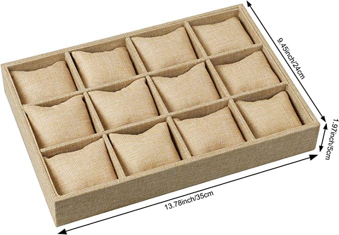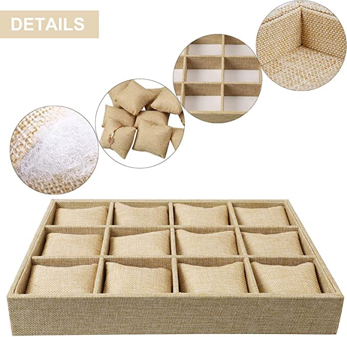 Hight Quality Natural Burlap Linen Sackcloth, Use for watch watches,rings,earrings,necklace,Bracelet,Brooch,jewelry,buttons, EXQUISITE HANDMADE, Watch tray,Showcase,Display,Storage,Organizer,Case, ADJUSTABLE SPACE SIZE