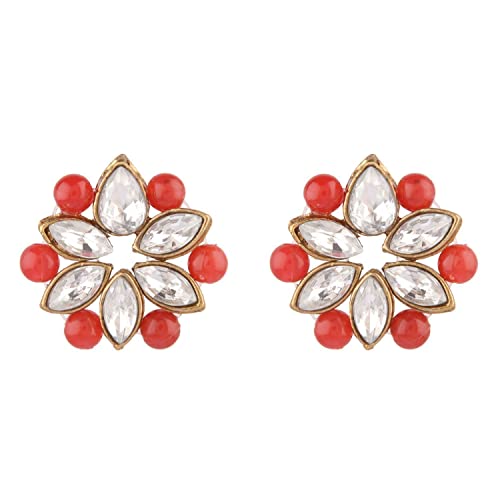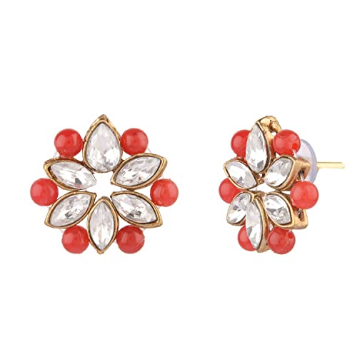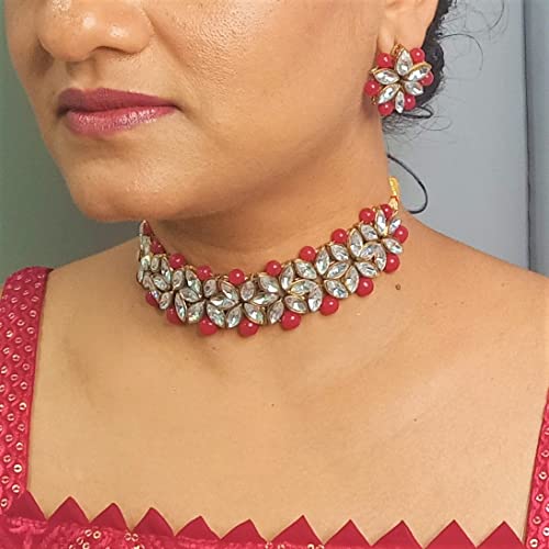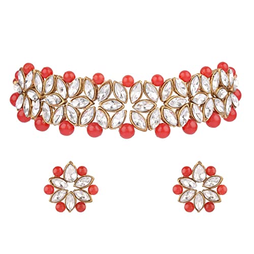 Archi Collection Gold Plated Pearl Crystal Choker Necklace Earrings Jewellery Set for Women, Valentine Gift