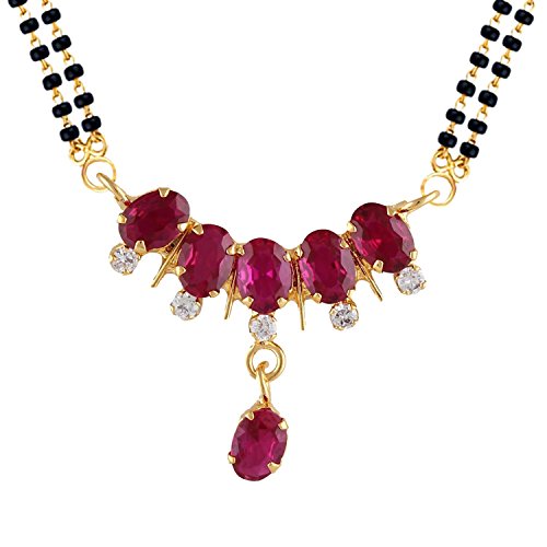 Archi Collection Jewellery Ethnic Traditional Ruby Emerald/Color CZ Stone Mangalsutra Pendant Necklace with Chain for Women and Girls