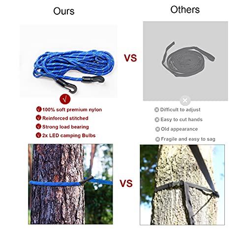 Areson Camping Accessories Campsite Storage Strap with 2 LED Camping Lights, 16ft Adjustable Tent Camping Lanyard Roap ClothespLine for Hanging Camping Gear and Equipment, Tent Accessories