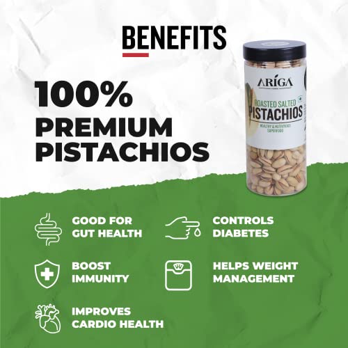 Ariga Foods Pistachios Roasted & Salted Dry Fruit Pista Healthy Product in Pet Jar Value Pack (500g) | Vitamins & Minerals Rich | Healthy Diet Food