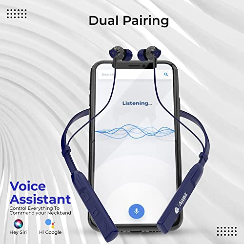 Aroma® NB119 Genius Bluetooth Wireless Headset Neckband with Long Lasting Playtime 60 Hrs, Smart Voice Assistant, Dual Pairing, Fast Charge, Sweat & Splash Proof, Best for Gaming, Running, Workout (Blue)