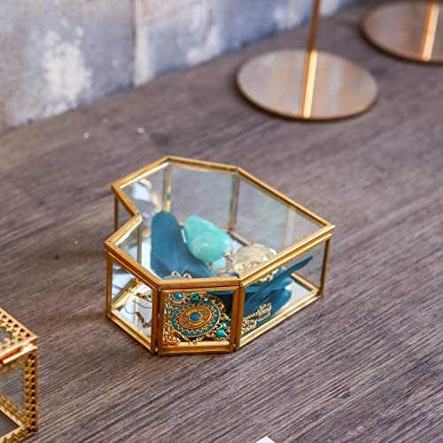 Art India Collections Heart Shaped Jewelry Organizer Brass Glass Box 5x5x1.5″